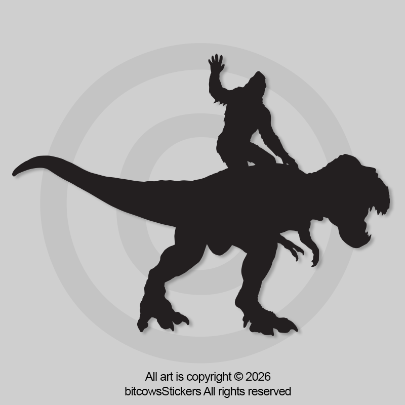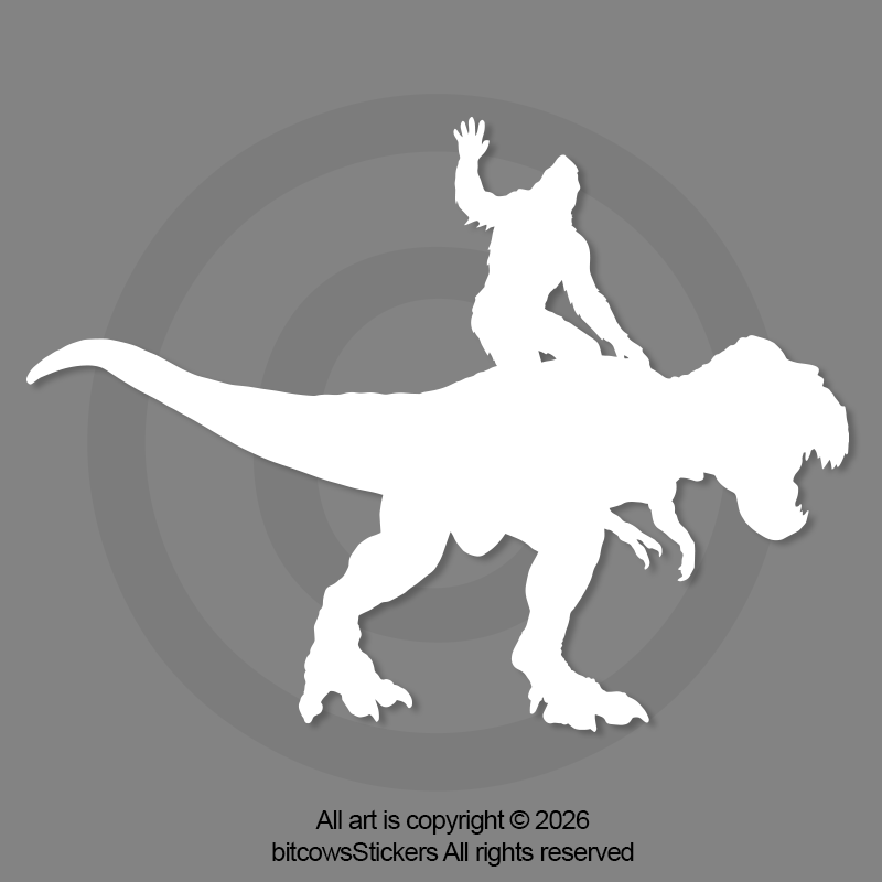 This bold silhouette decal features Bigfoot fearlessly riding a Tyrannosaurus Rex, creating the ultimate Easter egg for Jeep lovers, overlanders, dinosaur fans, and anyone with a sense of humor. Clean lines, high contrast, and instant “wait… did I just see that?” energy.