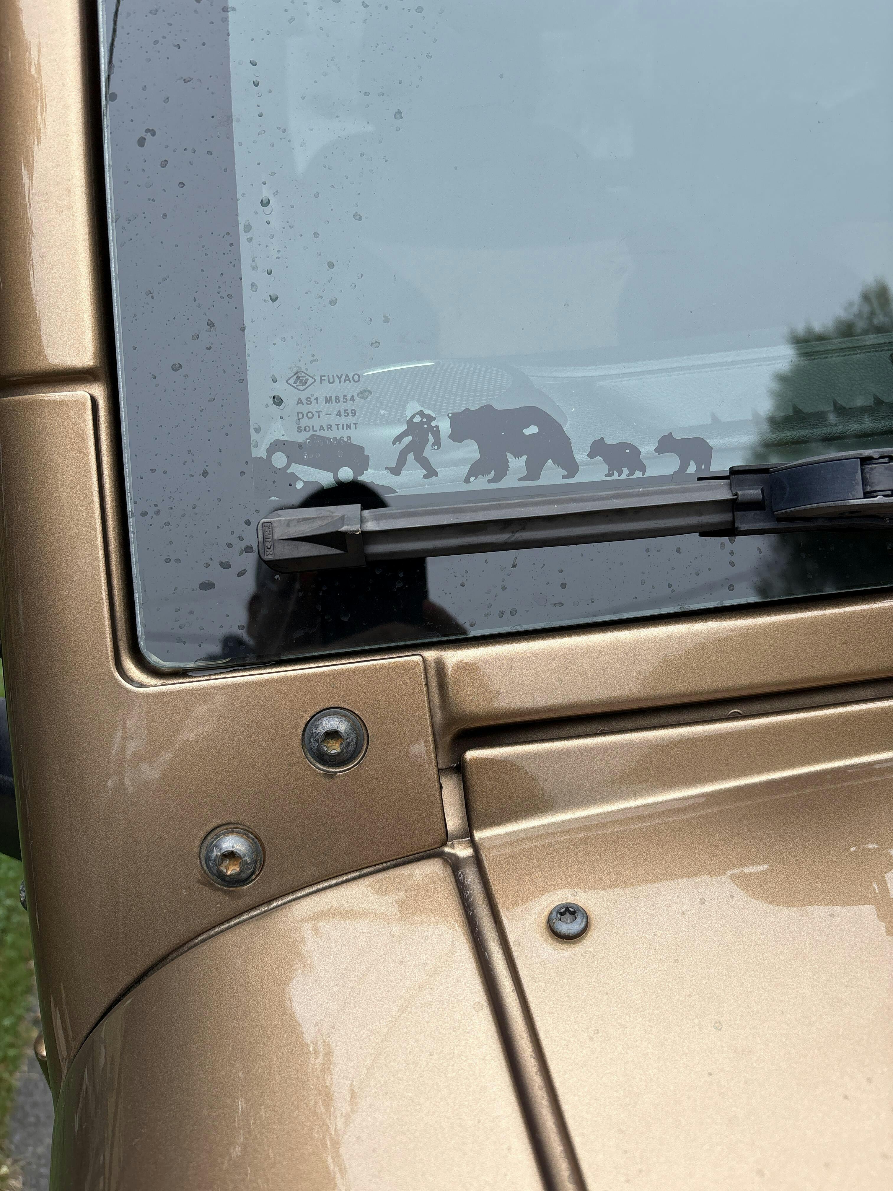 If you got a new windshield that didn't include the little hill climbing SUV easter egg on it. You can now add it back! Remember for the windshield these stickers stick on the inside of the glass. One in each direction.